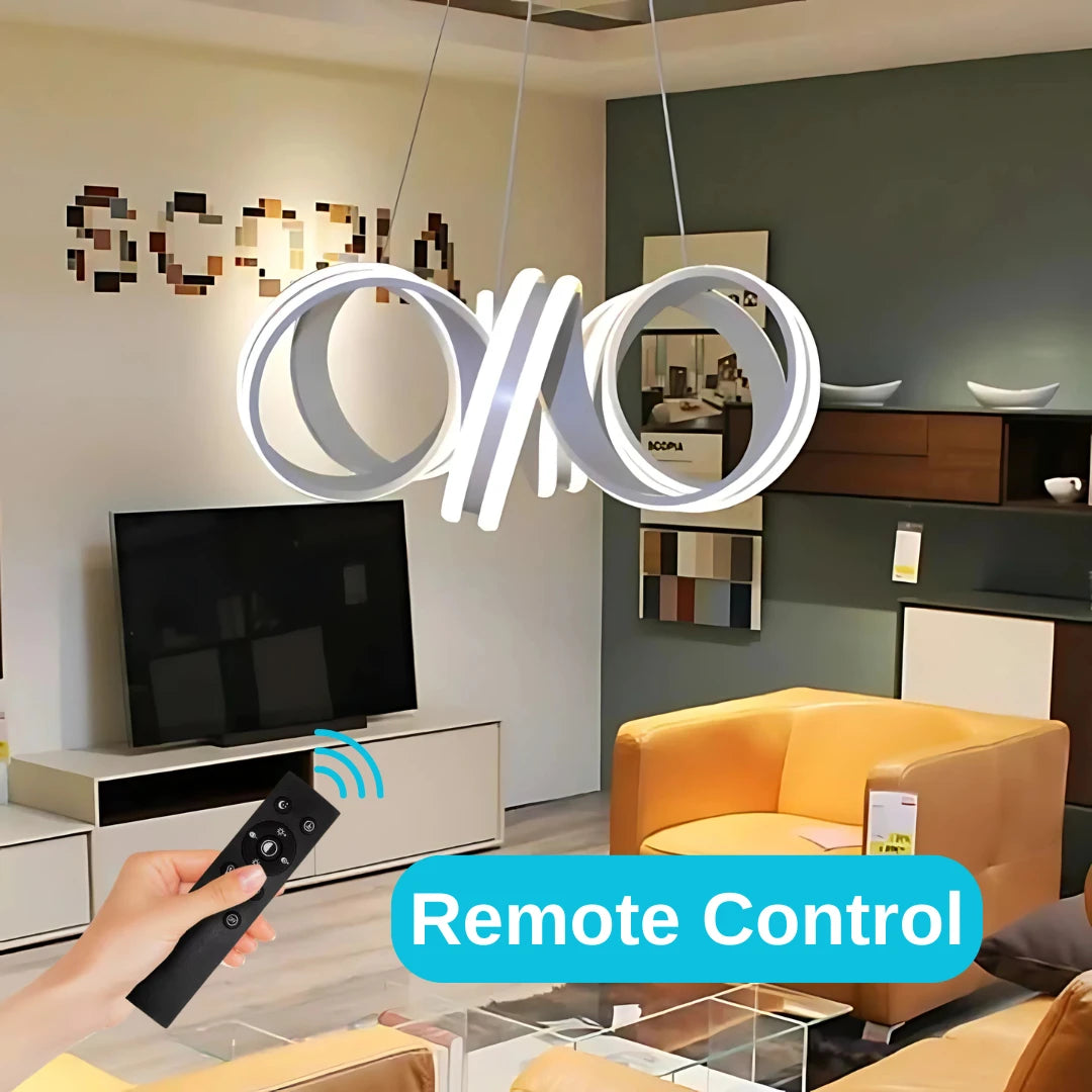 Lustra LED suspendata cu telecomanda INFINITY TWIST 180W, Ondulata, lumina Rece/Calda/Neutra, Dimabila, Alb, Inaltime Reglabila