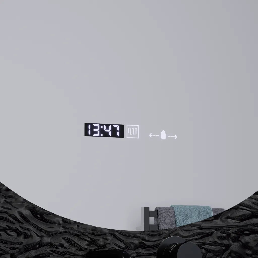 Oglinda LED Rotunda, 60cm, Serenite MotionGlow Marcello, Sistem Dezaburire, Ceas & Termometru, Dimabila