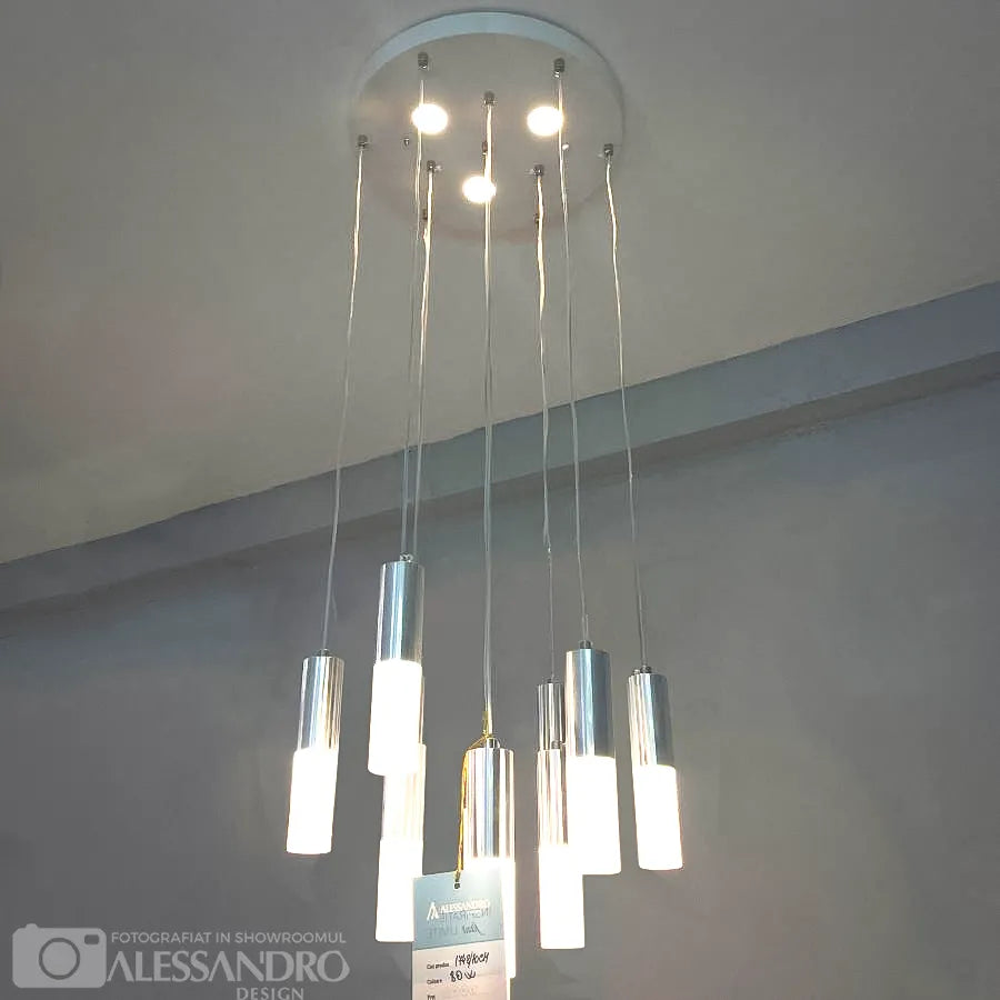 Pendul NEPTUNIA 80W, 10 Elemente, lumina Rece/Calda/Neutra, Crom Lucios, Inaltime Reglabila